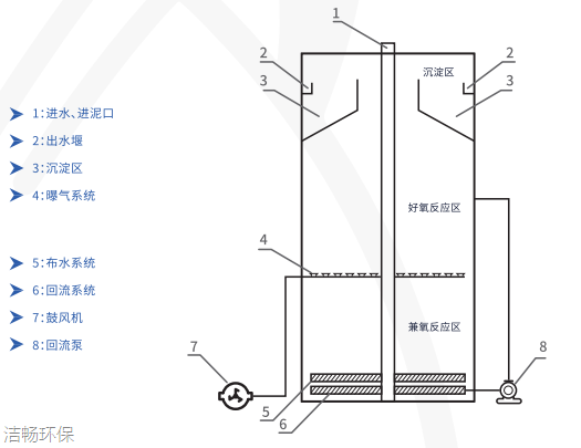 A/O 生物反应器以目前最成熟的活性污泥法作为理论基础,在运行方式上进行了多方面的改进,具有能降解COD、 氨氮、总氮的功能。反应器内设立了兼氧反应区、好氧反应区、沉淀区,能够在完成降解COD、氨氮、总氮的功能同时,实现污泥和清水在塔内分离,无需再另设沉淀池;同时可以根据污水水质的不同,可设计成集缺氧、好氧、污泥消化、生物膜反应器等诸多生物处理过程于一体的生化反应器。A/O 生物反应器能够实现污水处理设施的装配式和模块化,开启了工厂化预制污水处理系统的新模式,我们提出了  “工程设备化、设备标准化、运维智能化”的理念,更能适应环境政策和社会的快速发展的要求。